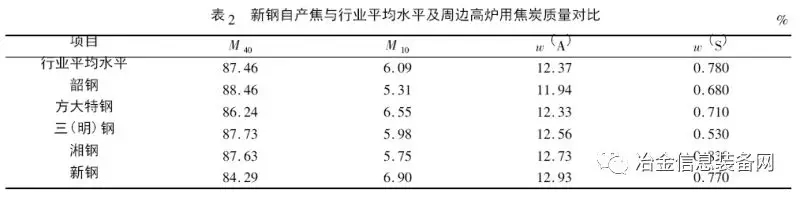 通過選擇合理渣系、加強管理、取消中心加焦冶煉等措施,實現(xiàn)了新鋼2 500 m3 高爐低品位、高比例燒結(jié)礦爐料結(jié)構(gòu)下的爐況長期穩(wěn)定順行。同時,其技術(shù)經(jīng)濟指標與行業(yè)同類型高爐指標對比,在新鋼2 500 m3 高爐入爐品位低于行業(yè)平均水平0. 81%的情況下,新鋼燃料比較行業(yè)水平低35. 95 kg /t,煤比高12. 57 kg /t,綜合焦比降低38. 06 kg /t。